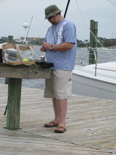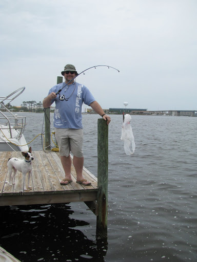 Actually, the only thing David did catch was the Wal-Mart bag that blew off of the dock. He could only retrieve it with the hook. ha.