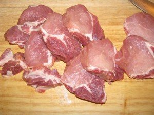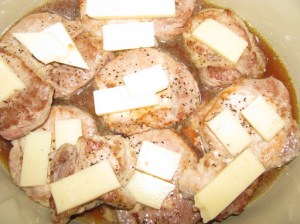 Put some olive oil in a pan and sear off the chops…placed them in my dutch oven (for the space), put some beef broth in there…