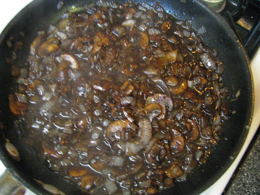 Add slices of the provolone cheese…and put it in the oven (350 degrees) to finish off the chops…then to the onions and mushrooms…Saute them in the oil left over from the chops. Add some butter, and then this glorious balsamic vinegar…and reduce…reduce…