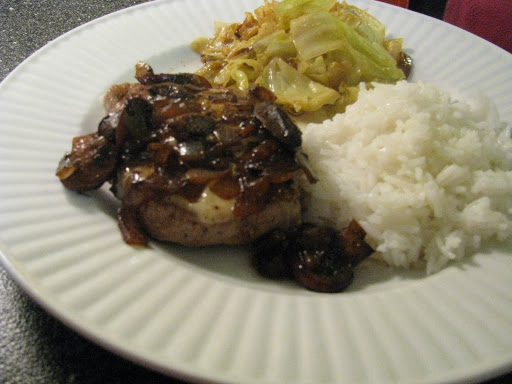 Seared Pork Chops with Provolone, Balsamic Vinegar with Mushrooms and Onions