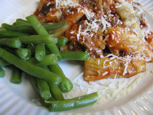 Pasta – really any kind – I prefer ziti or spaghetti – boil per directions but not all the way. It will cook more in the oven.