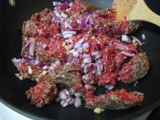 Brown ground beef, and onion (I had a purple one – use what you have).
