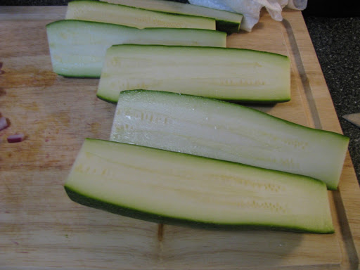 Clean zucchini, and remove the seeds or pulp from the middle.