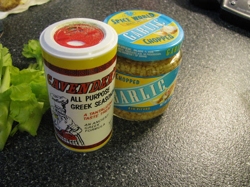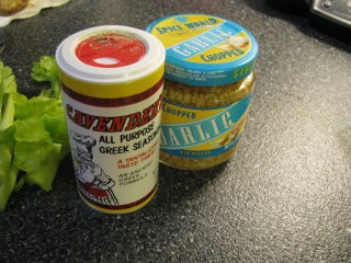 Yes, jar garlic (two/three teaspoons), and Cavender’s Greek Season (about a tablespoon).