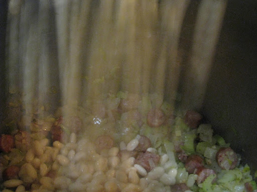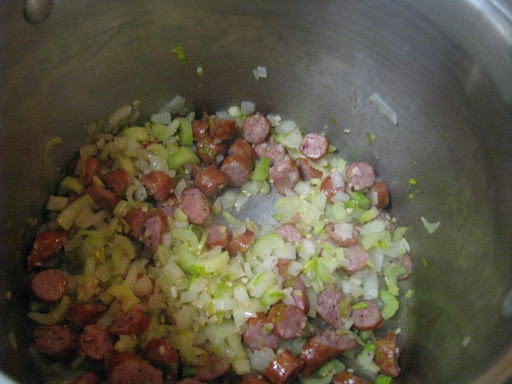 Add the sausage and brown (browning brings out the sweetness of the meat).