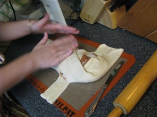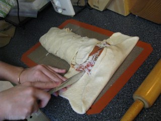 Begin with the opposite end, folding it over the pile of Italian goodness.