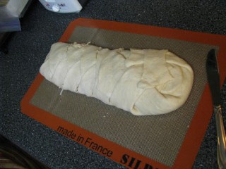 At the end, cut your strips before folding all of them, crisscrossing each strip.