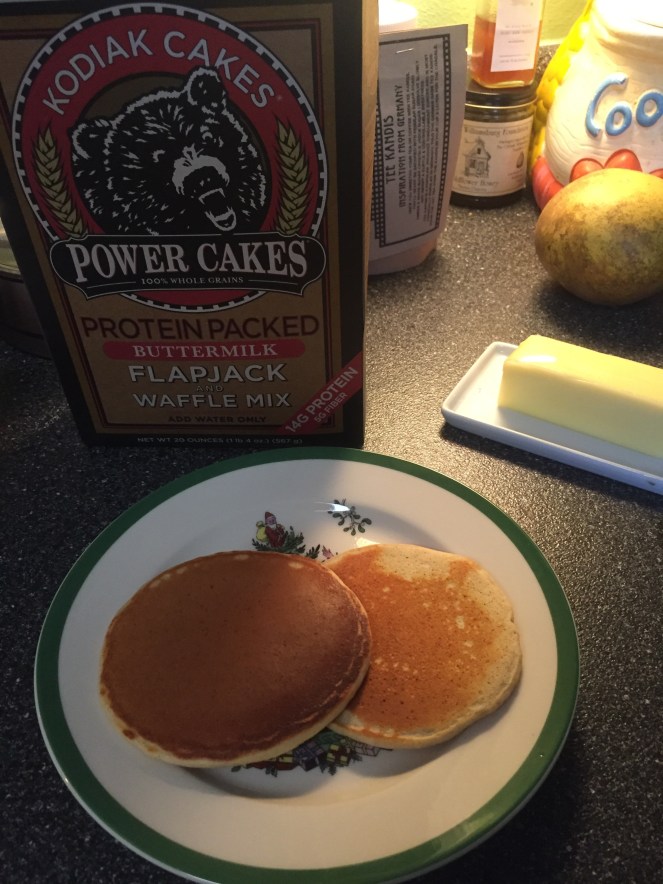 Yesterday morning (Sunday) David states that he is wanting waffles. He is the house waffle/pancake maker. So I thought…YAY! Waffles, crap, I can’t eat those. Then I remembered my protein mix. I had made pancakes before with the Kodiak Cakes mix, why not try waffles.