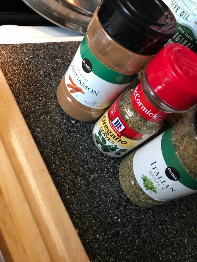 Seasoning:Â cinnamon (yes, just a bit), Italian seasoning and Oregano, salt and pepper.