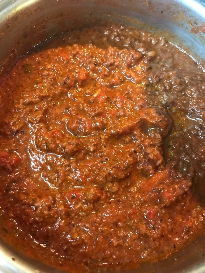 I used some of the Slocomb Tomatoes that I put up a couple of years ago for the sauce (and just let it simmer for a while), and a couple of cups of red wine.Â