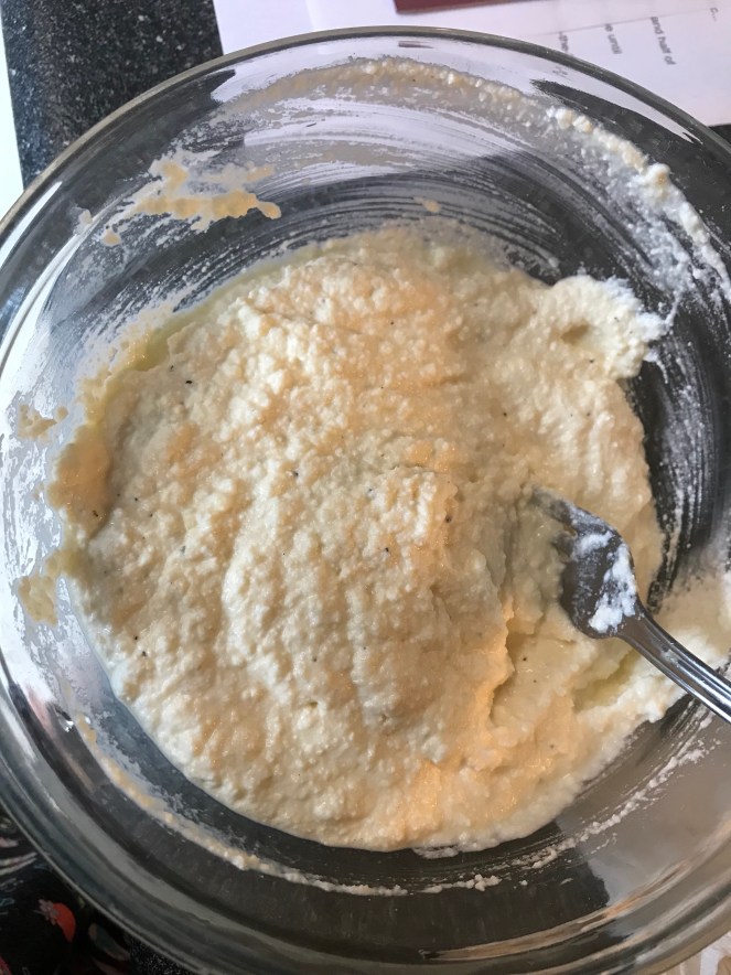 Hint: drop the half of cheese mix into spots around the dish THEN spread out to cover.