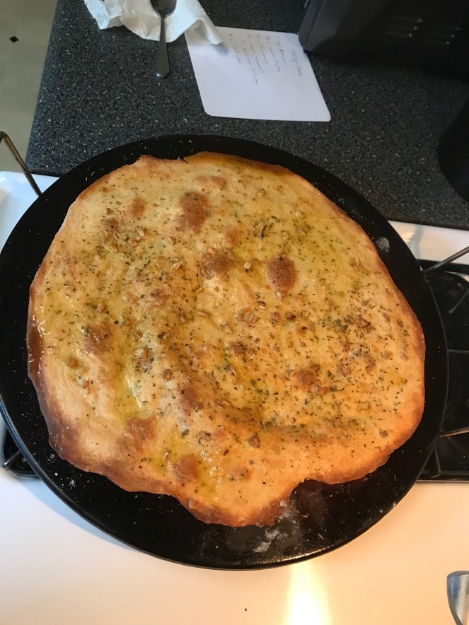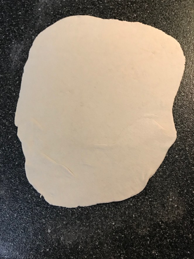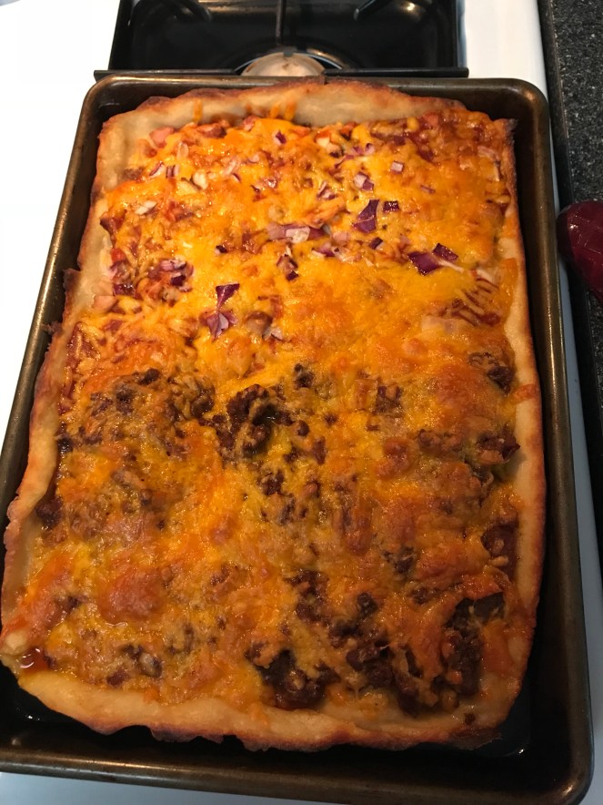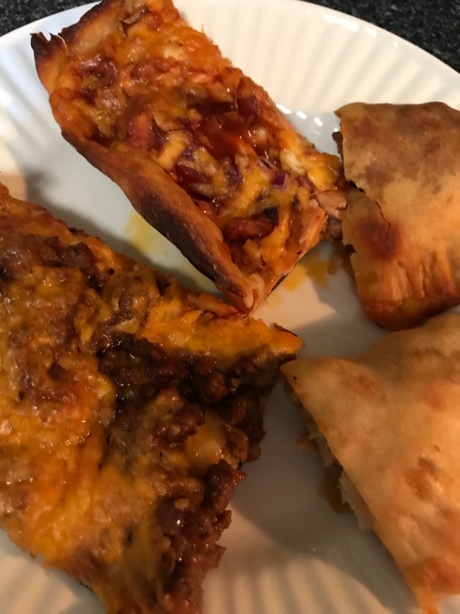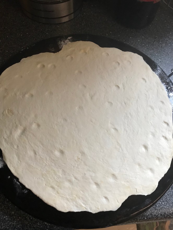 David really enjoyed all of it, and we had plenty left over. I will only make enough dough next time for one serving of pizza or meat pies as this was too much dough to use up in one serving.