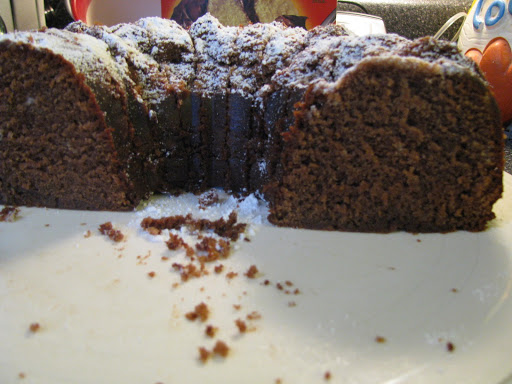 Well, I finally got eggs. I should give that credit to David as he did physically get them for me. So thank you David for purchasing more eggs so that we would have more chocolate cake. Like we need this!? I did send 3/4 of this Bundt with our Childrens Minister that was being moved this week. Brandon is a baker, and would always bring in treats for me to try. I will miss that. Hopefully, Brandon and Kristen will enjoy this.