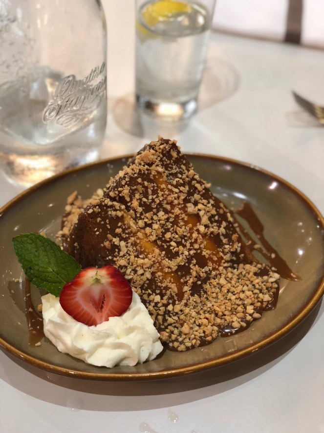 They have changed up the plating, which gave us much more of a serving of the Olive Oil Cake – okay! It used to be served in the (picture in the link) cups but this is a huge slice and is AMAZING! I have added Emeril’s recipe in the link —if you have the gumption to make it. I think I might try to one of these days. But to have the entire cake at my disposal might not be a good thing. We ended up taking half of it home even after sharing it.