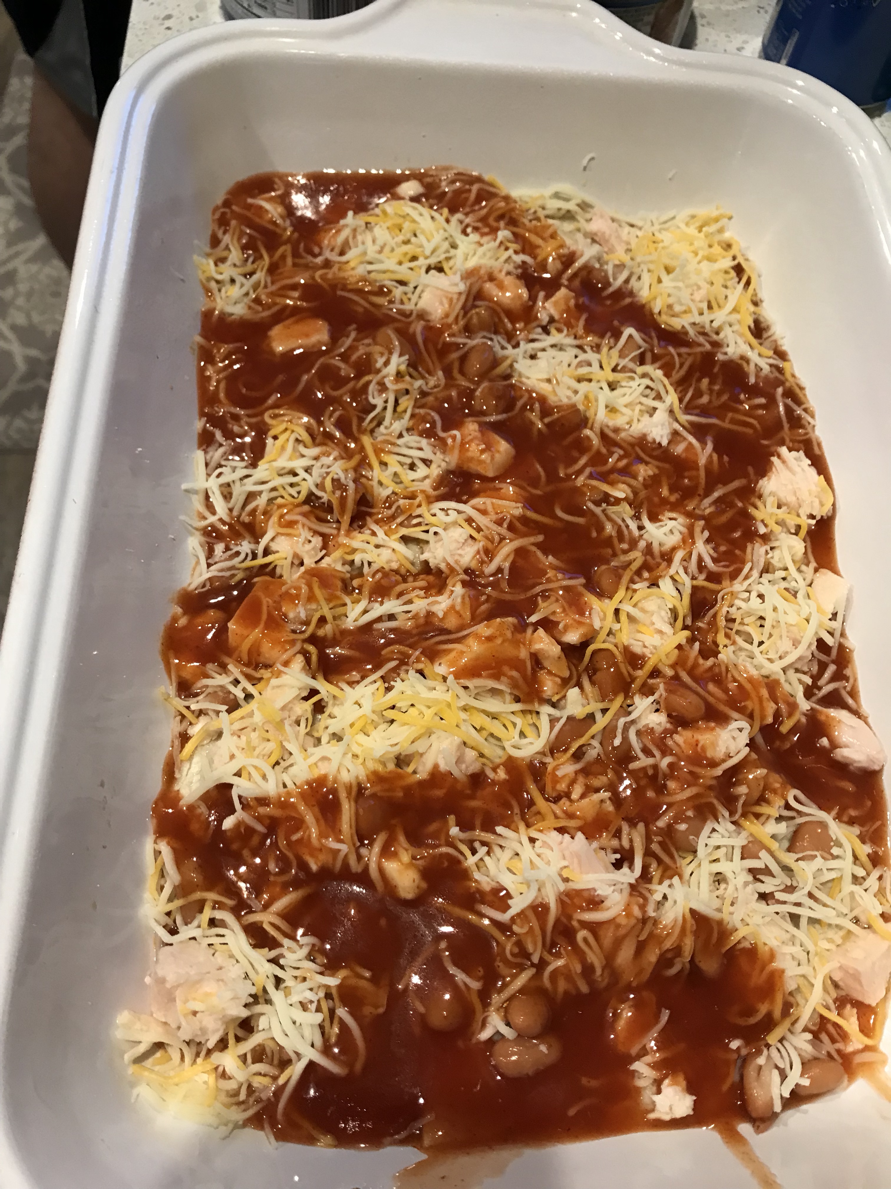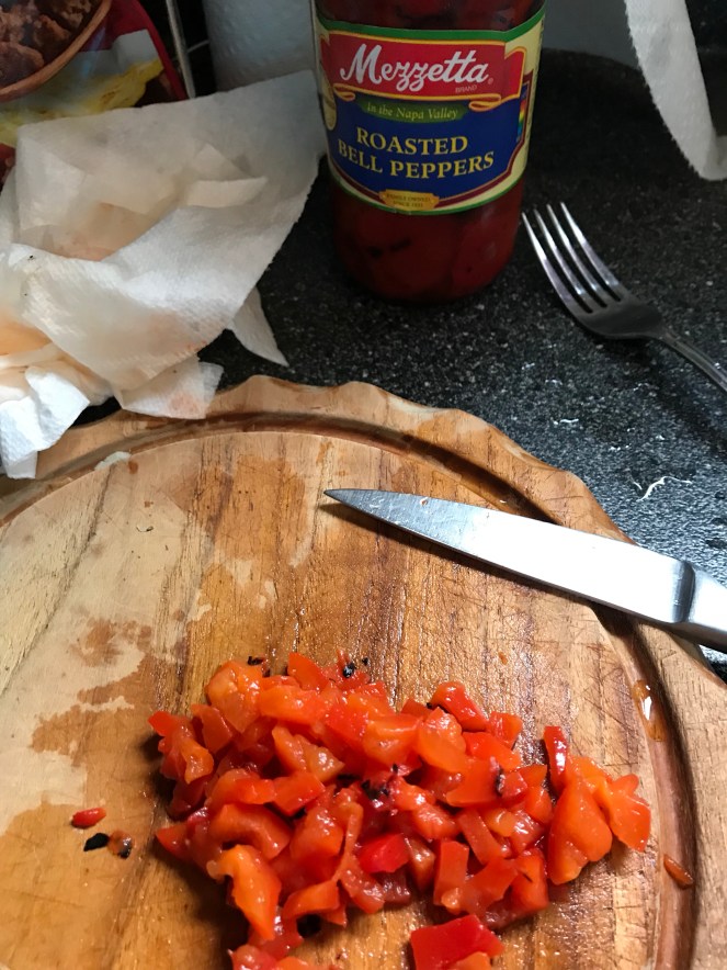 The rest was either frozen or canned, but assembled and re-purposed into the casserole. The first being the roasted bell peppers, chopped to add color and a bit of a bite.