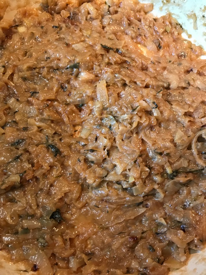 Pour the egg and sour cream mixture over the top of the hash-brown layers.