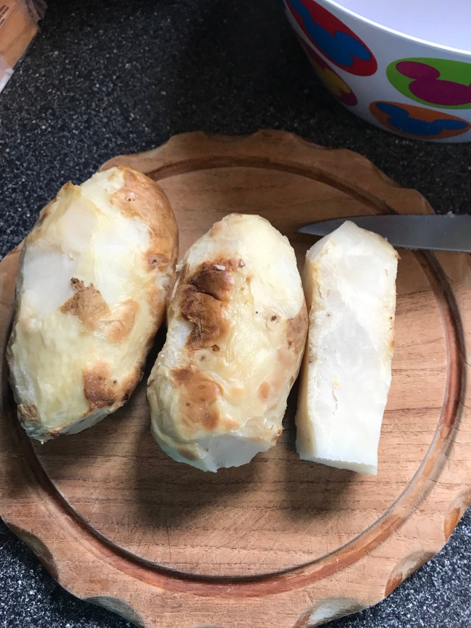 Have you ever stared at something then suddenly realized you could do something else with it? I did that exact thing with my leftover baked potatoes. I have baked potatoes, and just used them for normal leftovers. David would used as a normal side dish, or top them for BBQ pork or brisket. But Carmen was home, and I wanted to make something different.