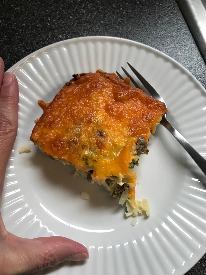 Breakfast Casseroles are a great way to use up to lots of little things left in the freezer or refrigerator. Carmen really liked it. I loved this. David really enjoyed it as he loves potatoes, and anything that I cook with them in it. What do you cook that you use up your leftovers or extras?