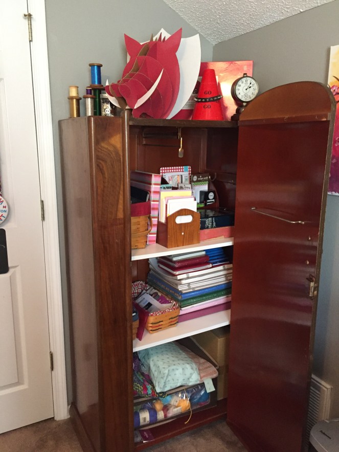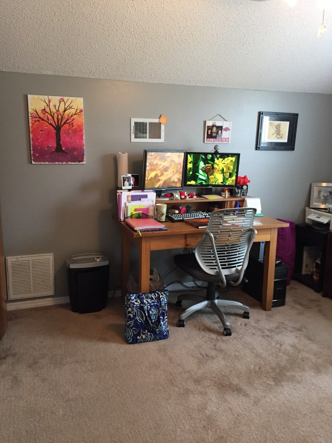 Carmen was home last weekend, and claims my craft room/office as her bedroom for when she is here. We got her a really nice air mattress, and it accommodates her fine especially since her main living space is at school.