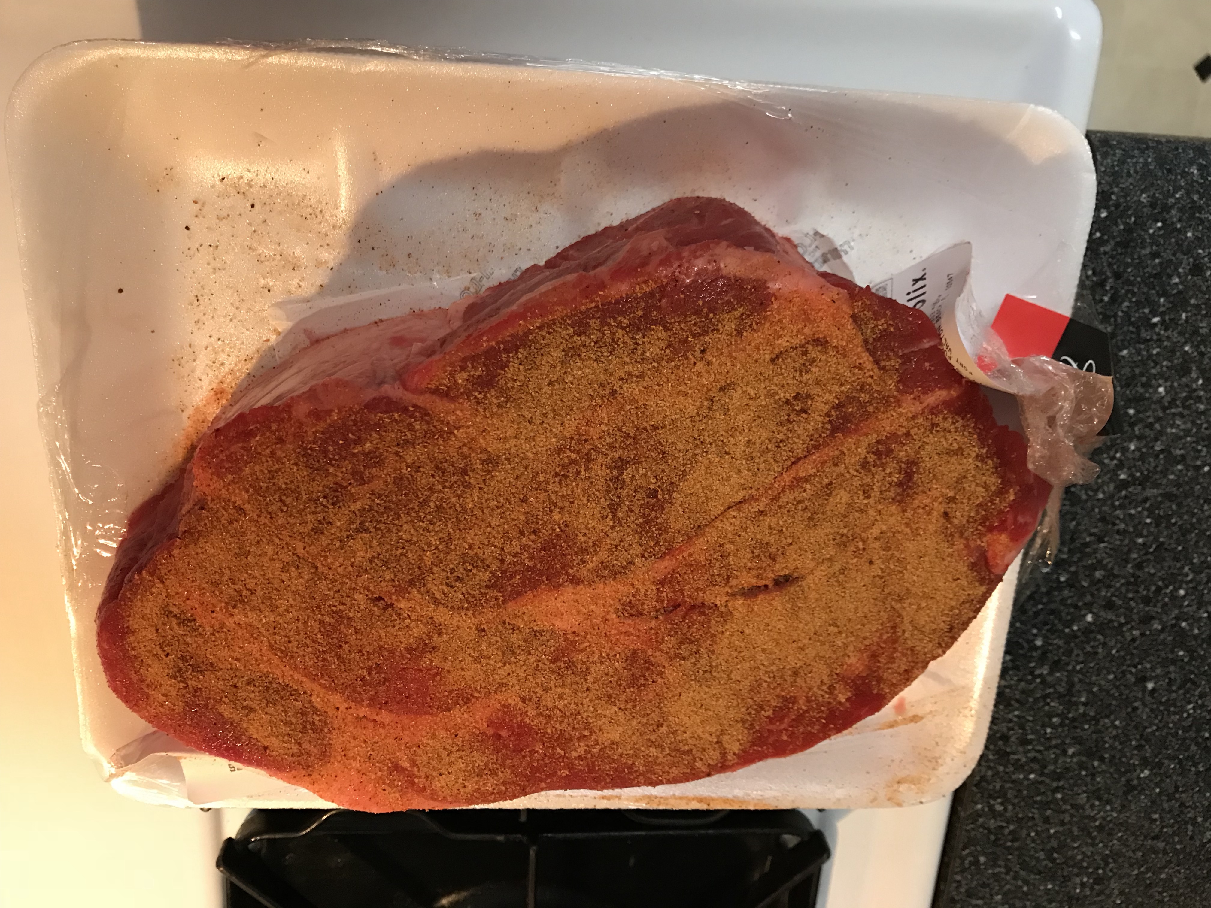 I coated the roast (on both sides) with McCormick Season Salt, and seared in some olive oil.