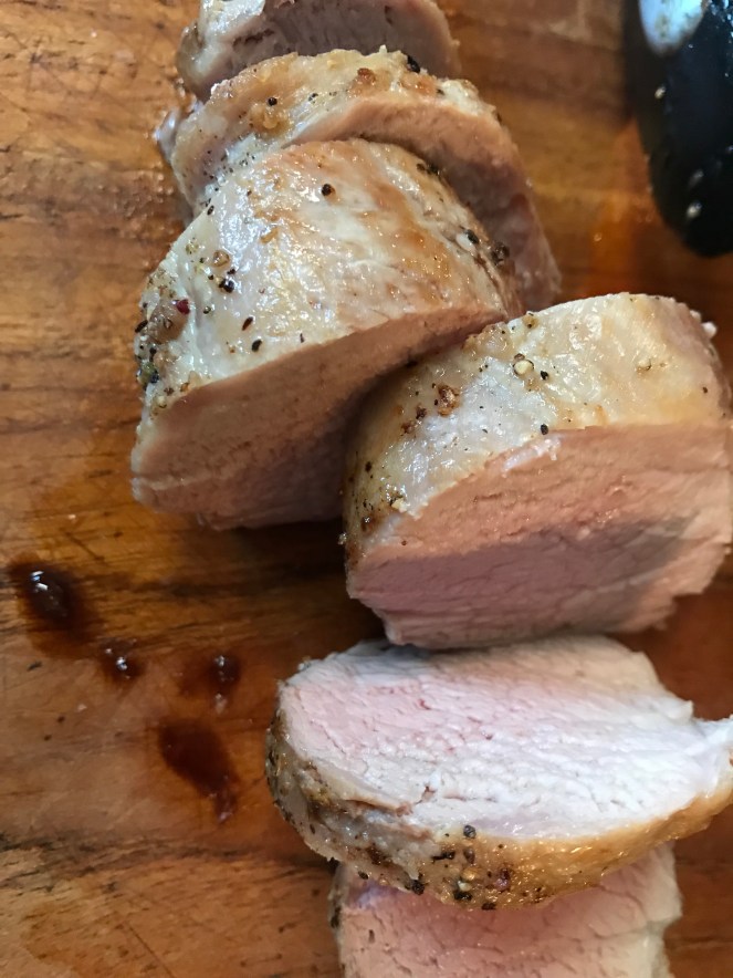 David’s plate and his has the Fig Balsamic sauce on the pork. Recipe coming tomorrow.