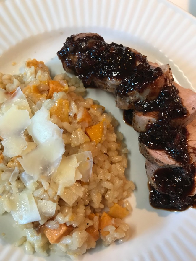 David’s plate below. I served this with a roasted pork loin with fig-balsamic sauce (recipe coming soon).