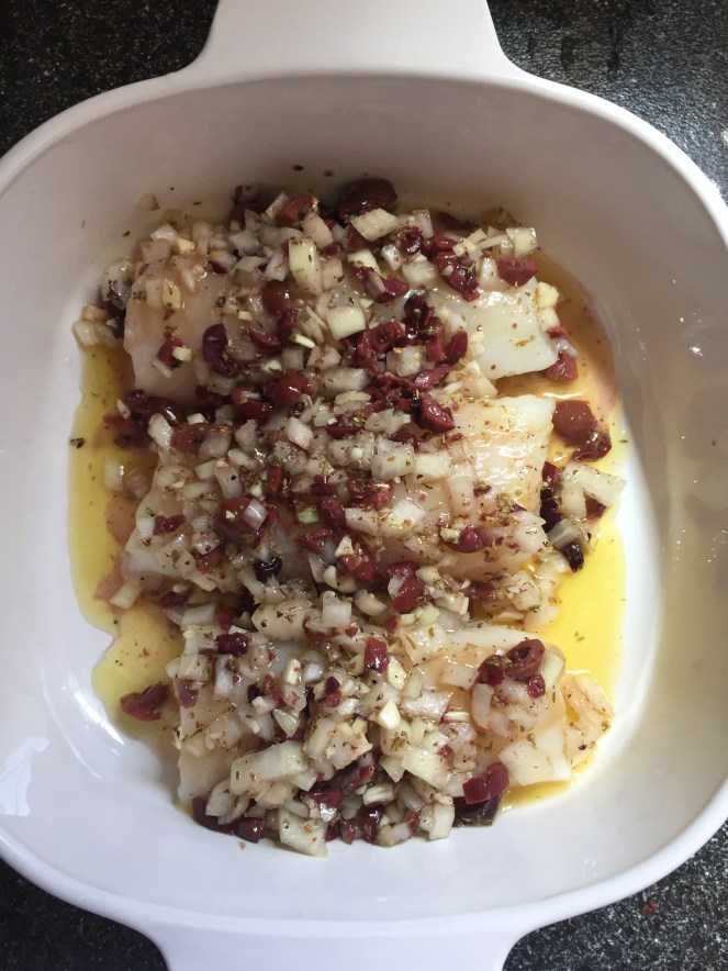 Bake at 350 degrees for approximately 20 minutes. If you only have thicker slices of Salmon, check them at 15 minutes. My piece was a thin slice, and was a bit overdone (you can tell with Salmon if it ‘bleeds’ white). But it was still super tasty and tender.