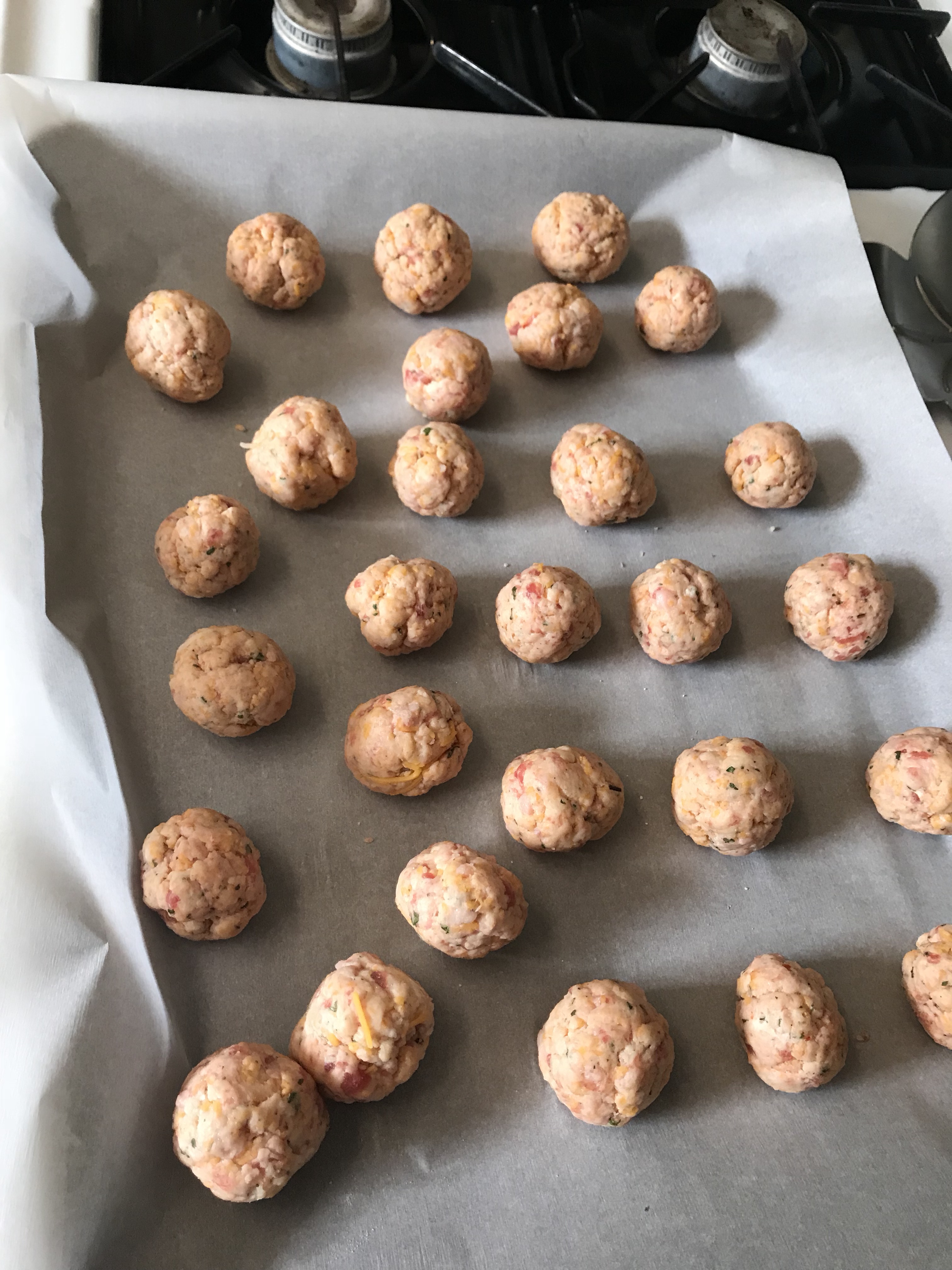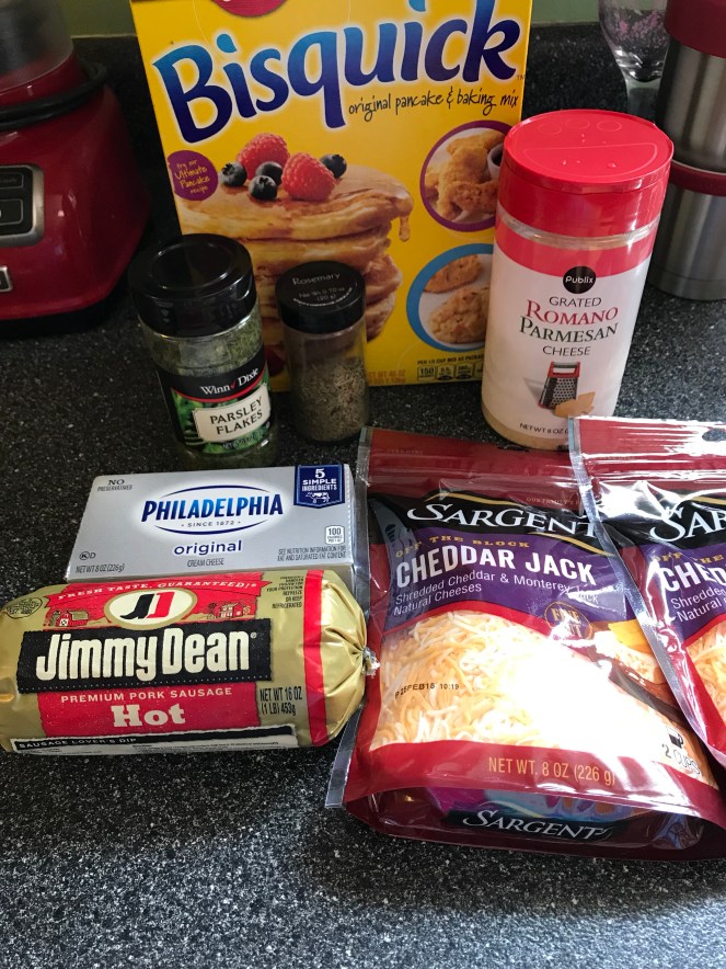 I froze half of the mixture. These were creamy, moist, and had a bit of a kick due to the hot sausage (used Jimmy Dean’s Hot). I loved the original recipe of the sausage balls without the cream cheese, but these are so much better.