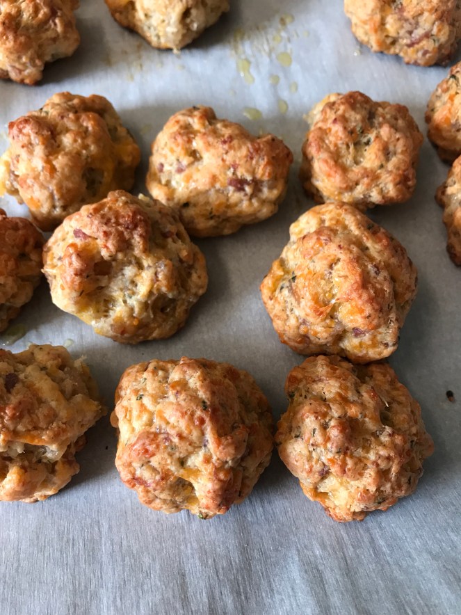 My supervisor brought in some of these sausage cheese balls to share, and oh my, I loved them. Original recipe at Plain Chicken.