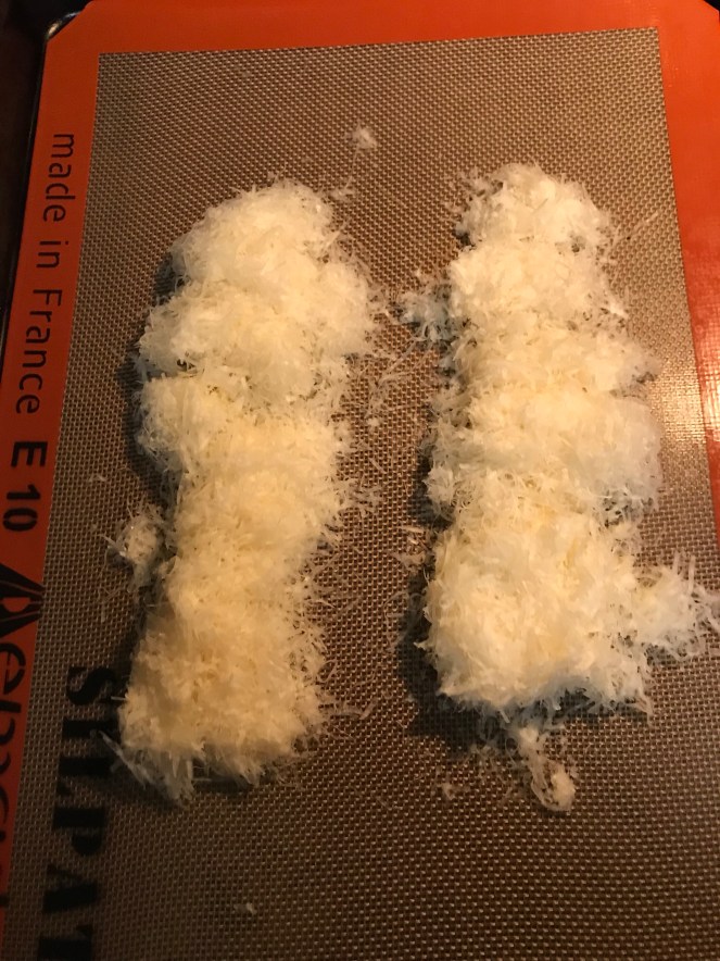 Placed the cheese into two strips on my cookie sheet (with either parchment or silpat).