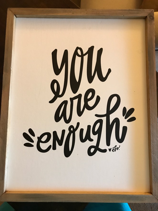 I bought this at TJ MAXX. I have been doubting myself lately, and how much I am doing. This reminds me that I am enough. I am doing enough. It will be hanging in the office soon.