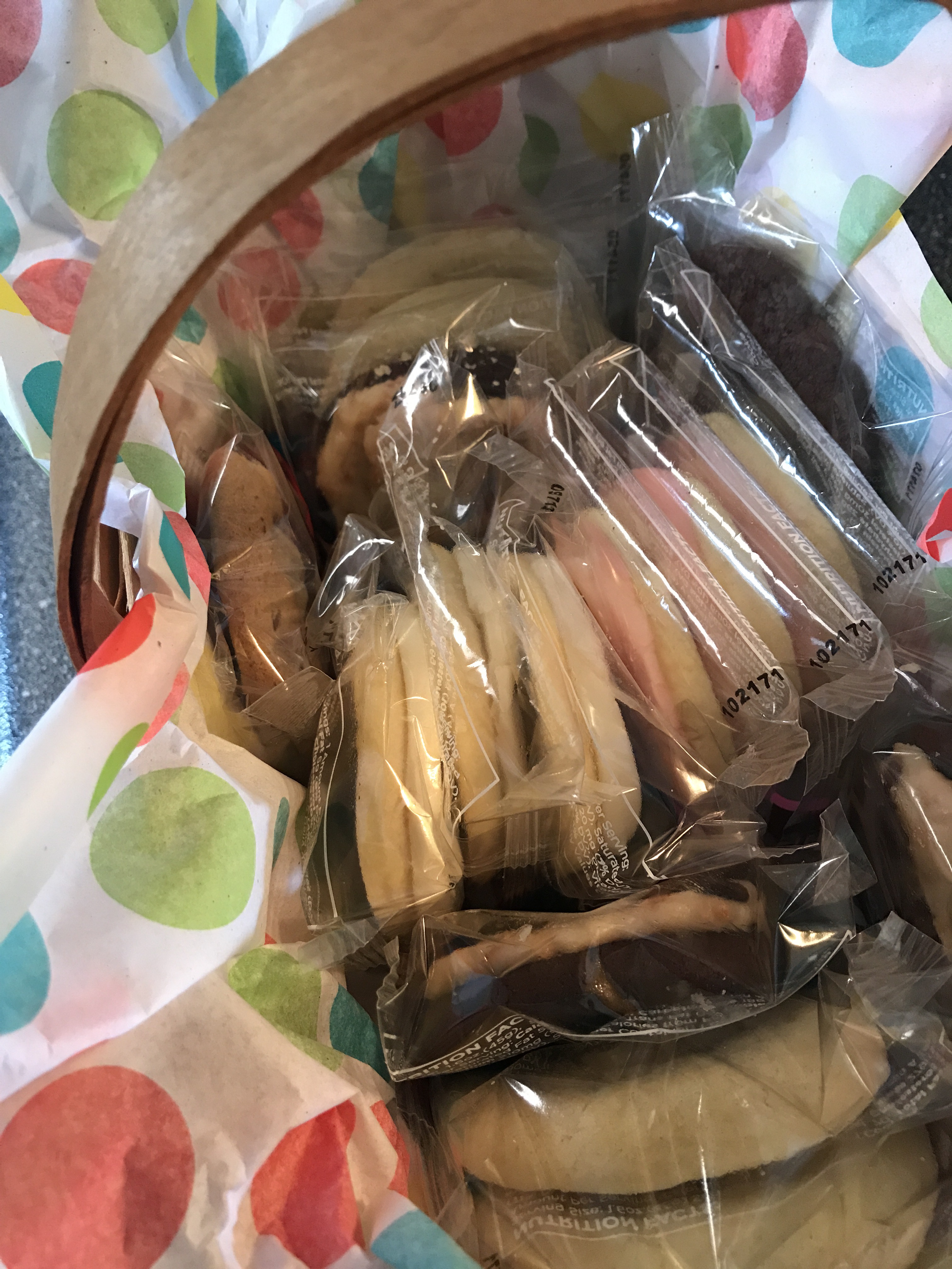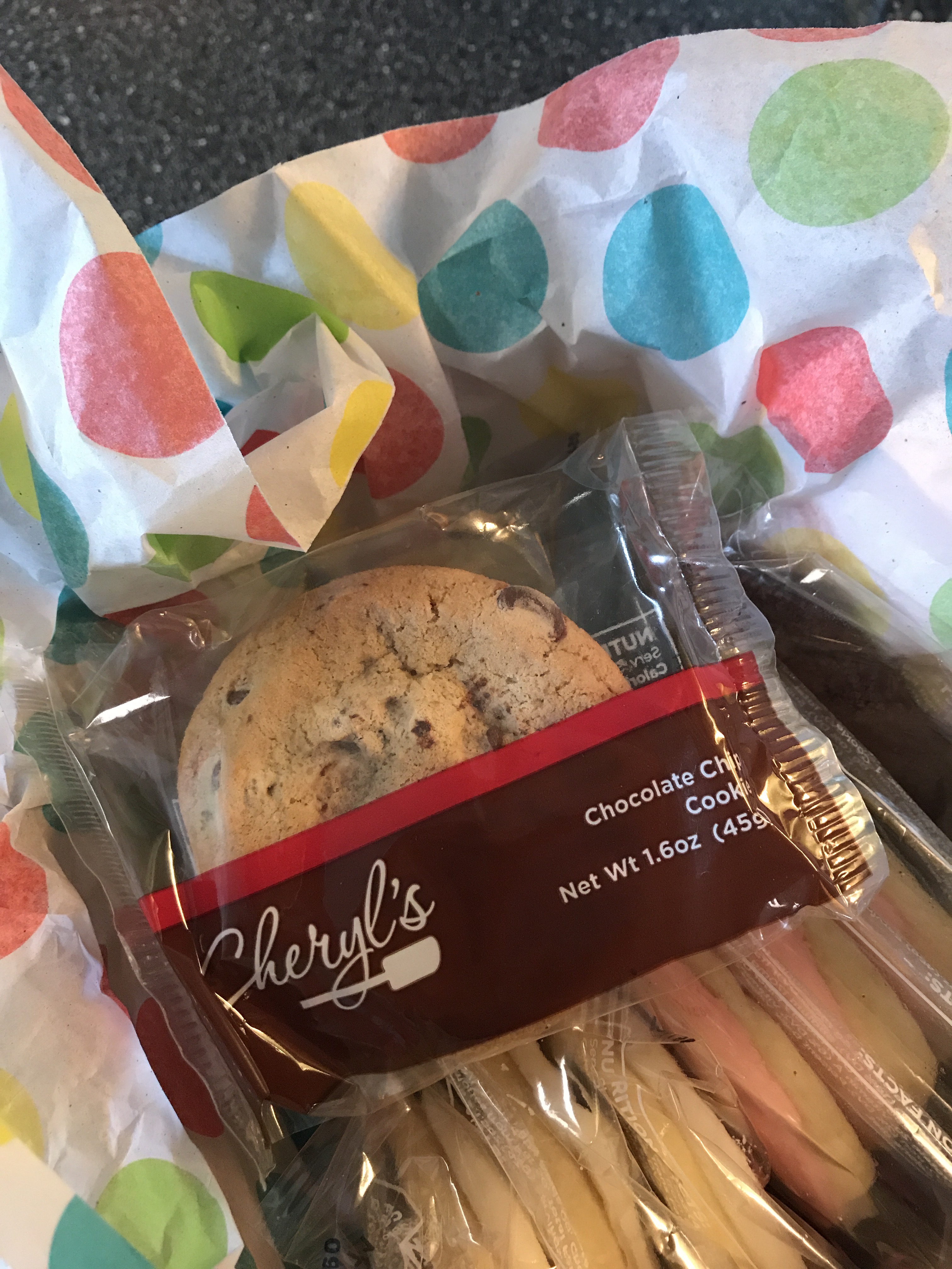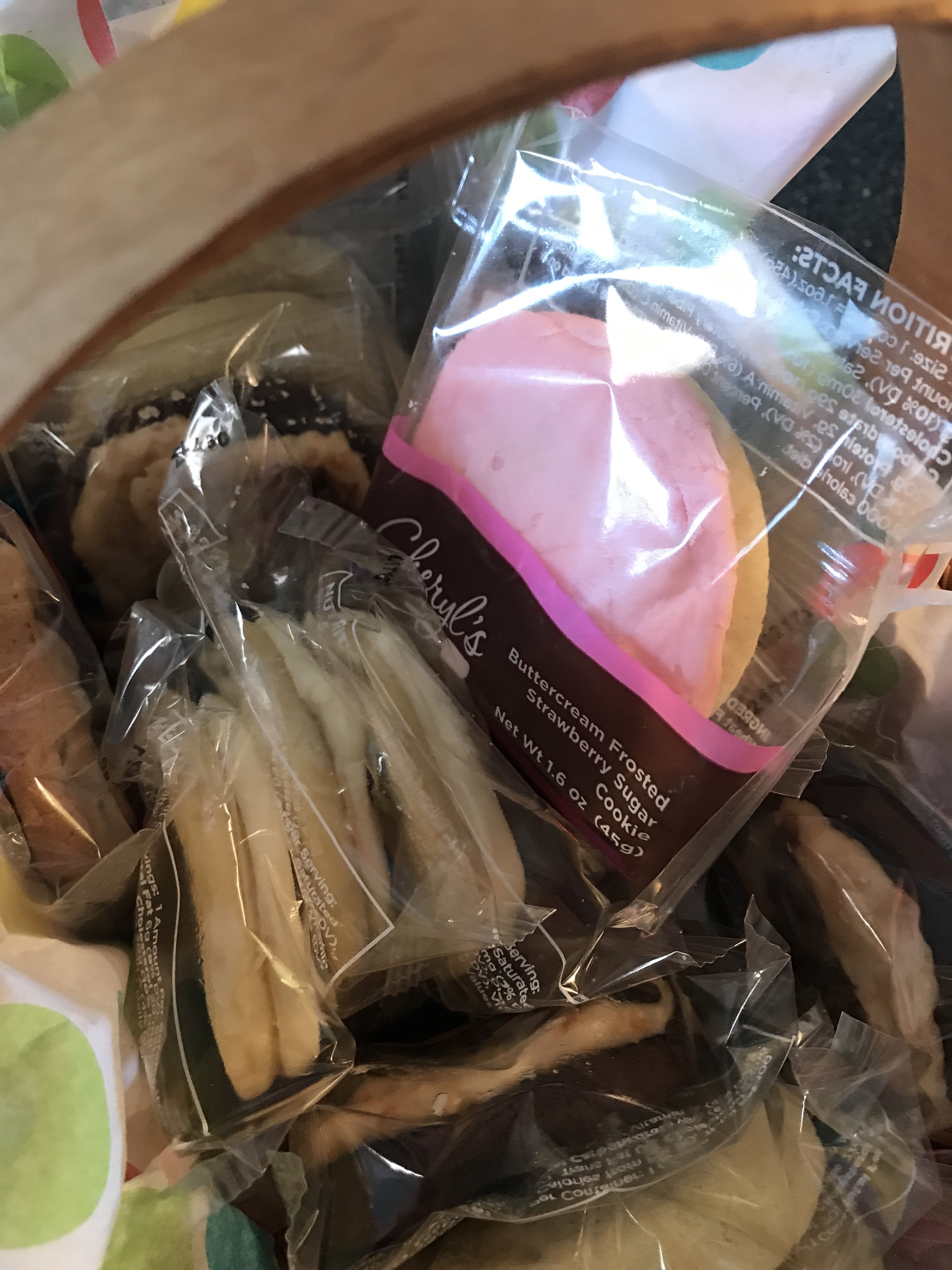 Cookies? A basket full of assorted Cheryl’s cookies says a little more. Happys. Everyone deserves a happy every once and a while. Just a little something that says thank you; I was thinking about you; or just ’cause.