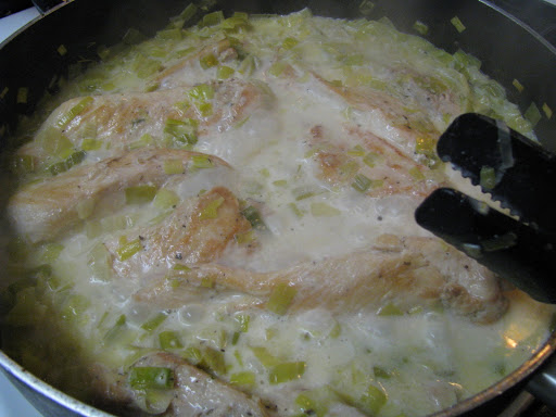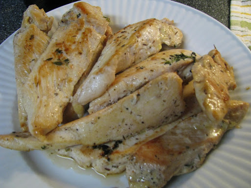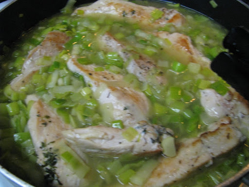 Start with sauteing chicken (4 small breasts) in olive oil, season with salt and pepper.  I also used Herbs de Provence, and  fresh thyme.