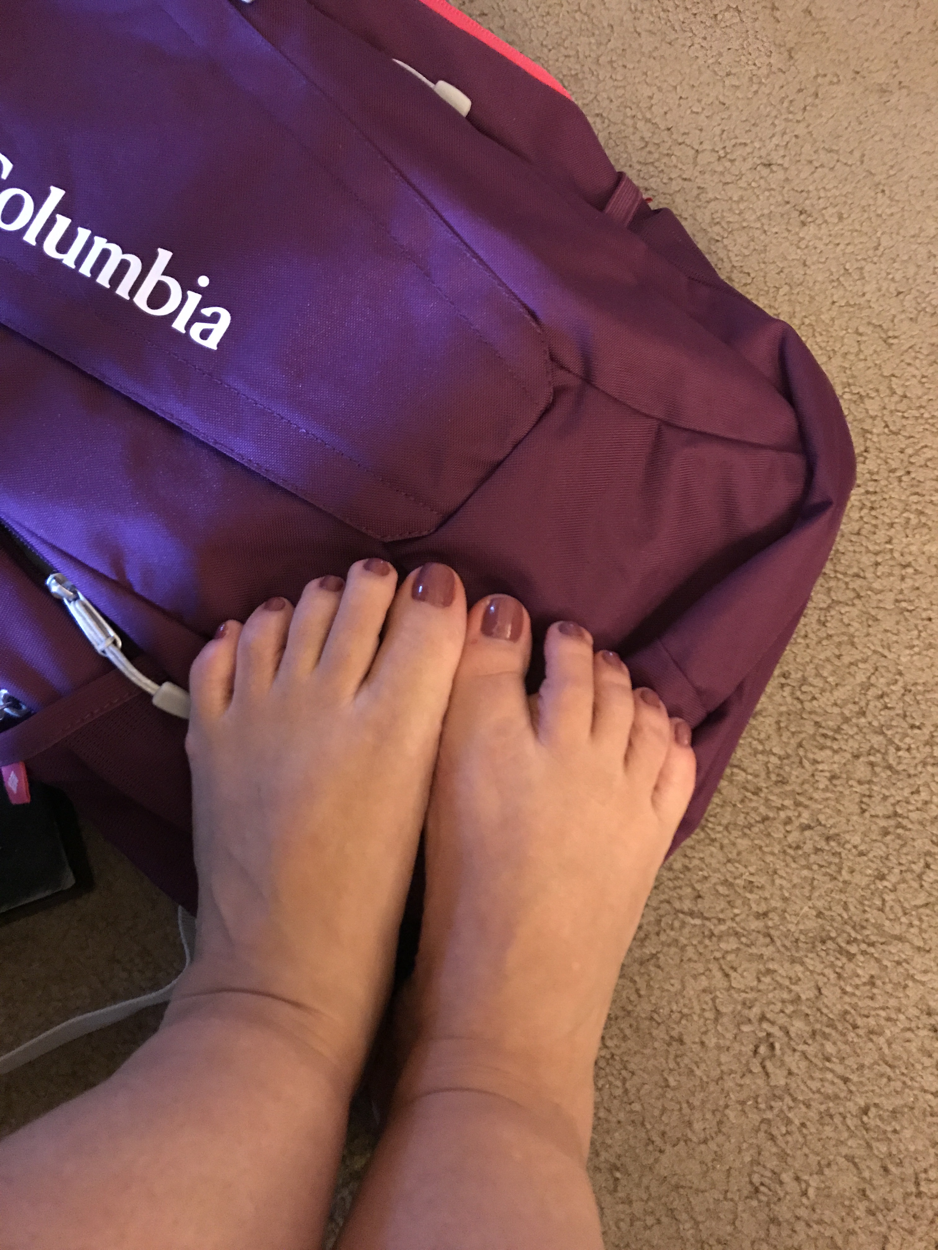 I got my toes done on Saturday and realized that the color matches my new backpack.