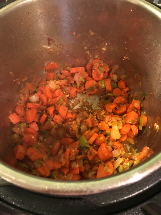 Add onions, carrots and cook until translucent, add garlic and cook for 1 minute more.