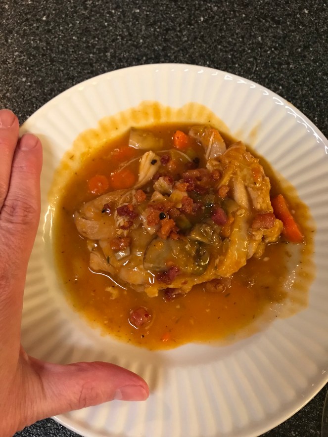 Add chicken thighs back to pan, pressure cook for 13-15 minutes. Manually release. Check thickness of sauce, if to your liking, serve.