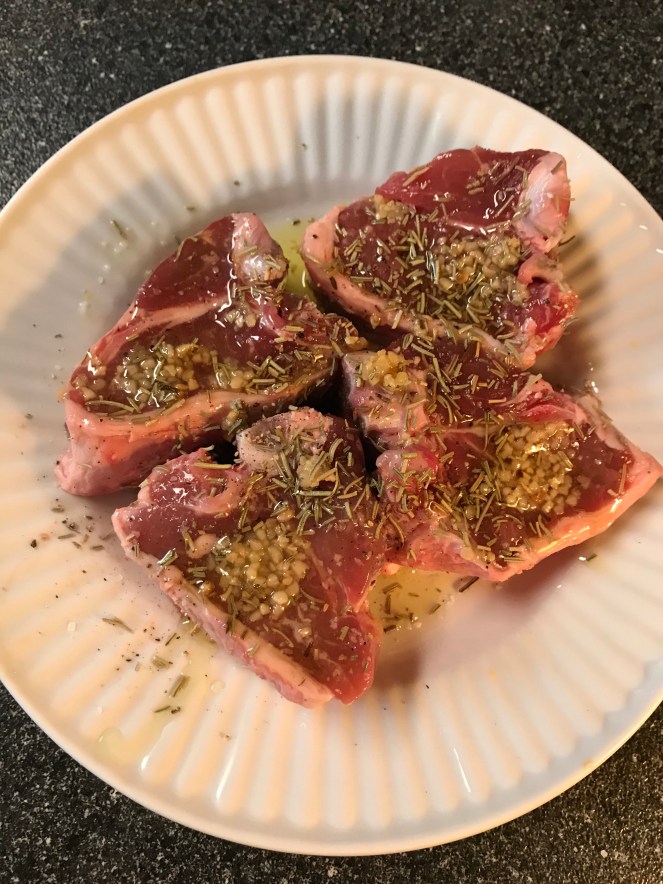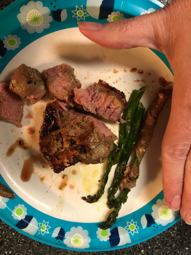 And, yes my fingernails are still stained! So, the recipe called for the following: cup of bourbon, 1/4 red wine vineager, orange peel, juice from orange, salt and pepper. David had exactly one cup of Bourbon left…it was a sign…it was meant to be used for this recipe!