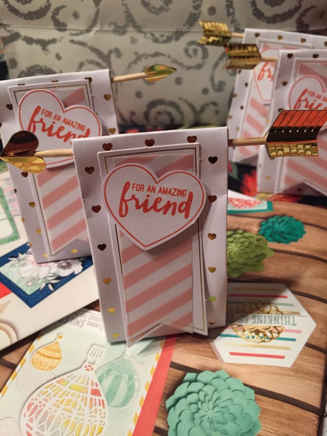 We got together the other night to craft these yummy box treats for Valentines Day. It was the January Paper Pumpkin.