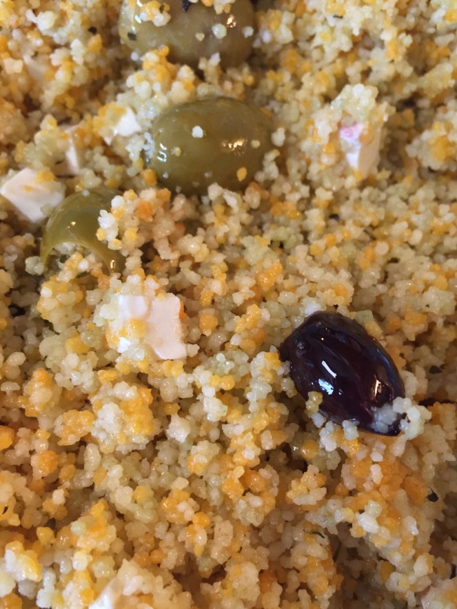 David’s regular plate with spinach on the bottom of the chicken (2), and leftover pasta salad.