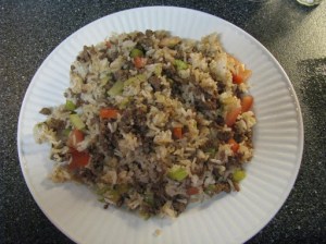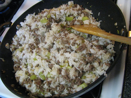 I chopped up a couple of sliced tomatoes, and stir in to the dirty rice.