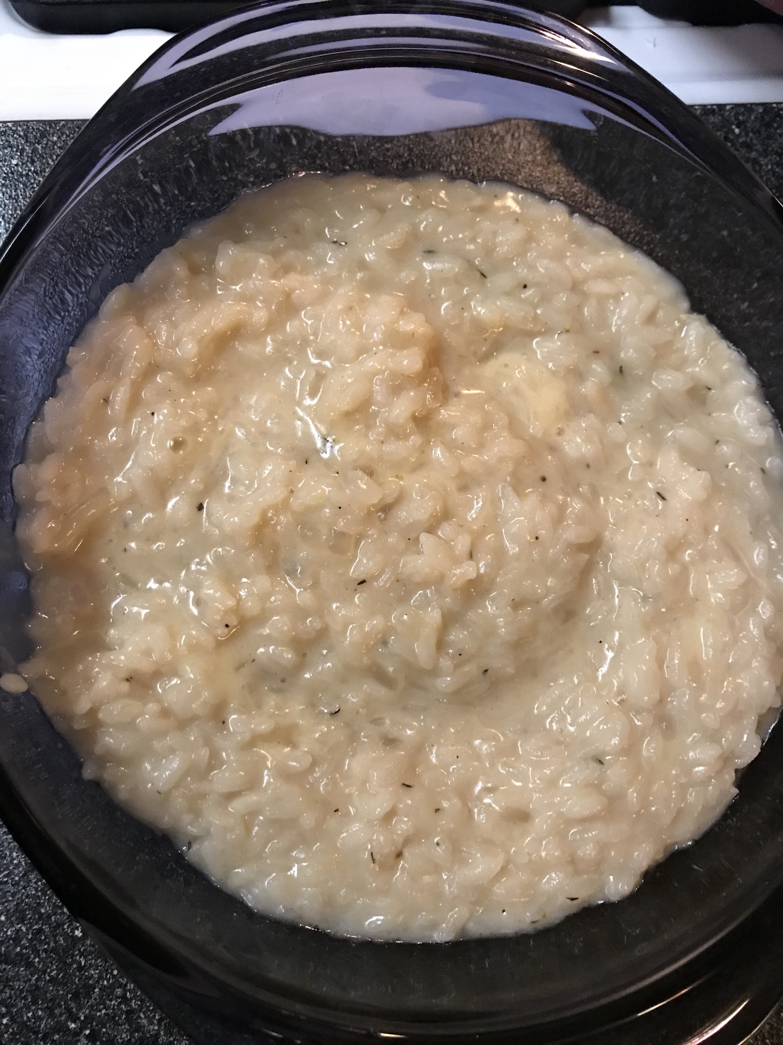 For my liquid I use 2/3’s cup chicken stock and 1/3 cup wine (warmed – not hot or cold).