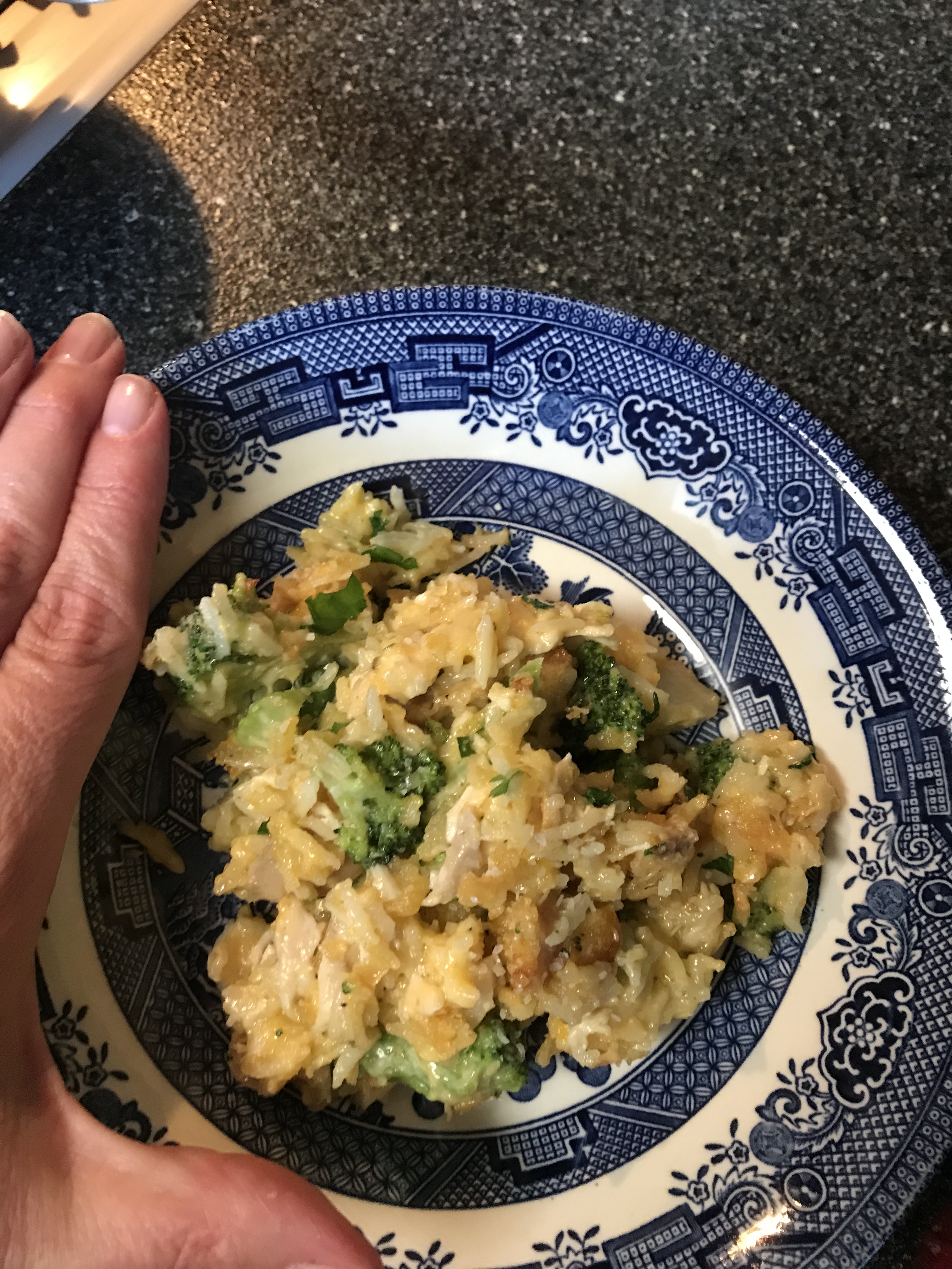 I saw this on Instagram from @momontimeout. She has some amazing recipes. I found this Cheesy Chicken Broccoli and Rice Casserole recipe on her website, and decided that we needed something comforting.
