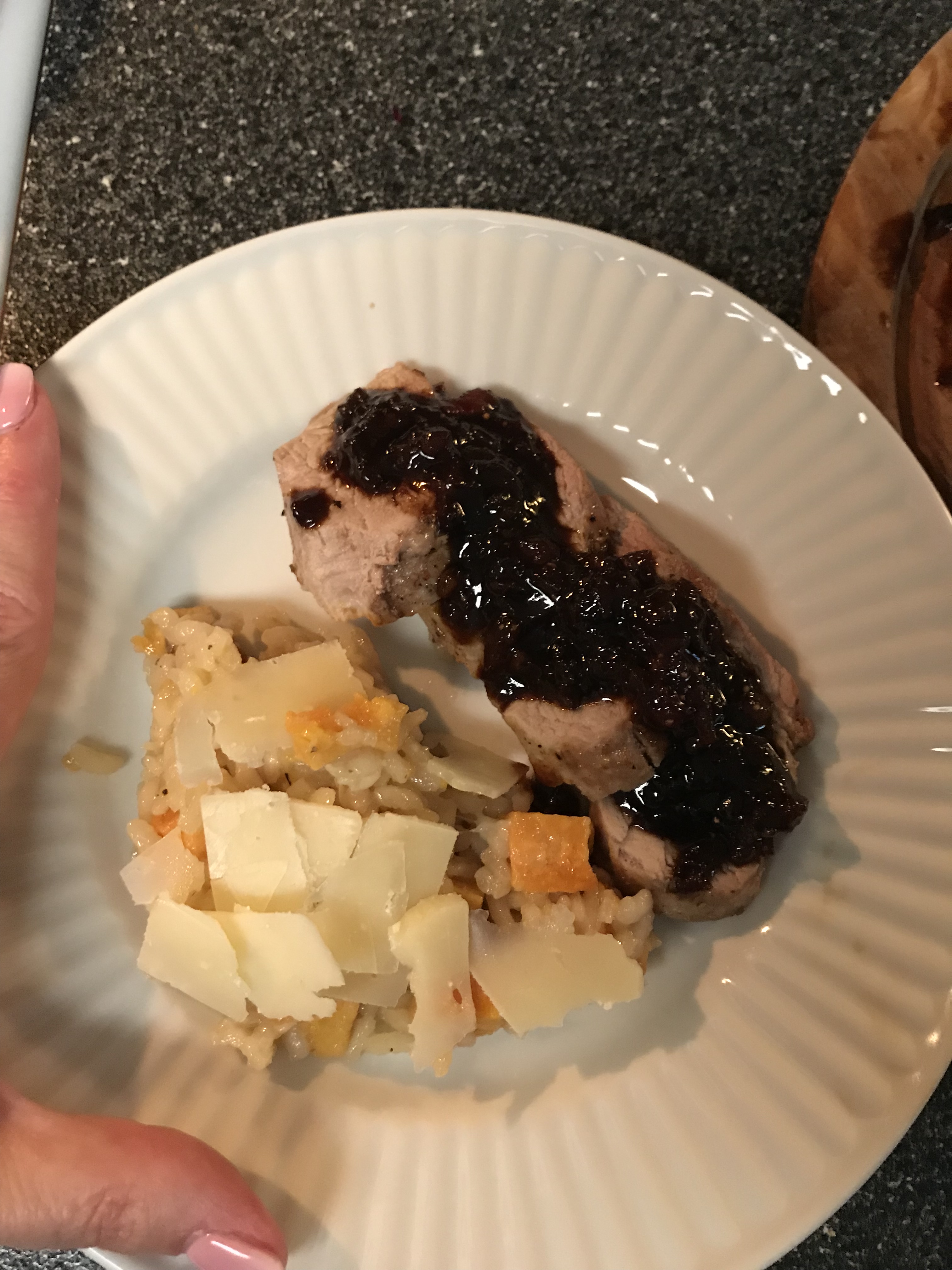 David’s plate below. I served this with a roasted pork loin with fig-balsamic sauce (recipe coming soon).