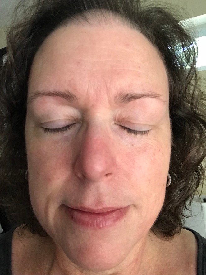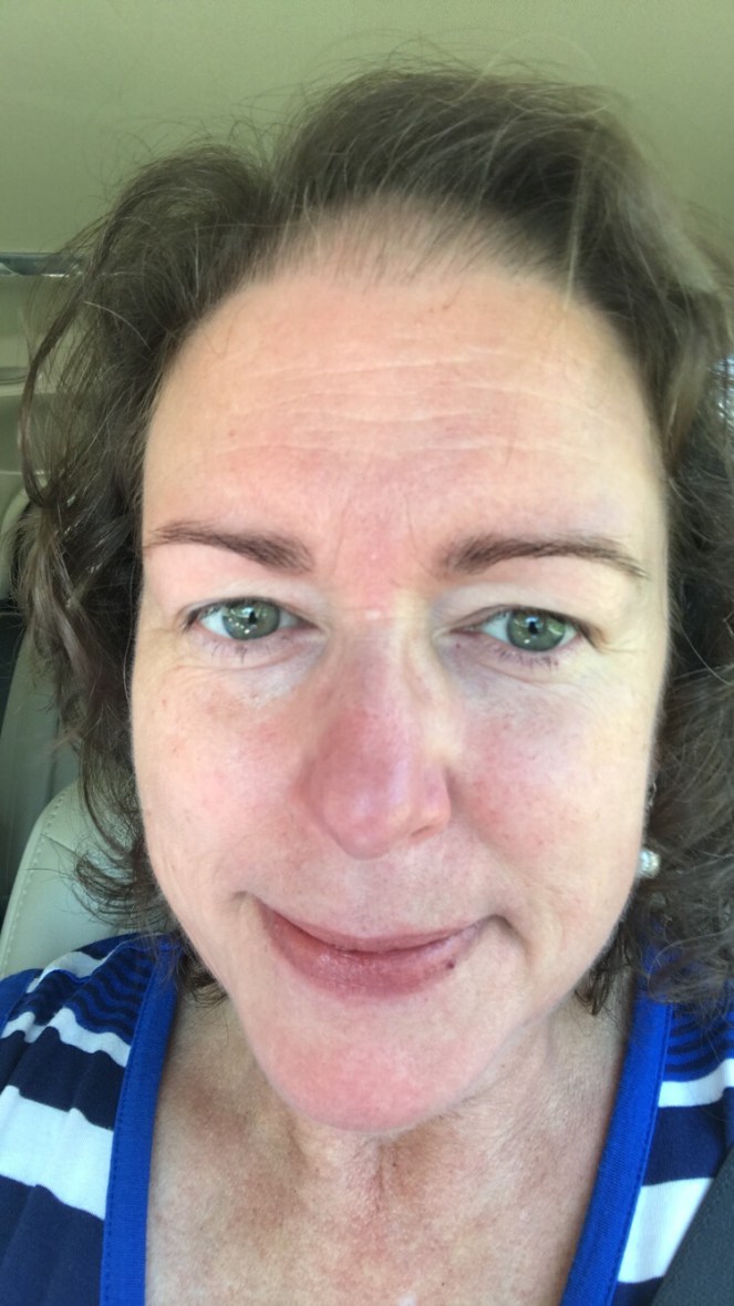Again no makeup, but my after!! So excited. I won’t have to bother with a makeup pencil or doing anything with my lashes. This is huge for me especially due to my Sjogrens (my eyes are extremely dry and wearing makeup increases the dryness). This next picture was immediately after having the tint done. I didn’t want to wash it for a while as the longer you wait the LONGER it will last.