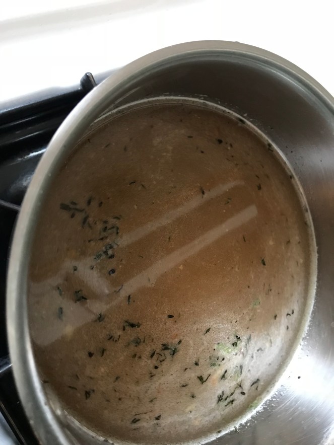 Then I added some chicken broth (low sodium) and brought it to a slow simmer.