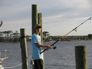 Stephen loves to try to fish, but his abilities are not there…but the spirit is.