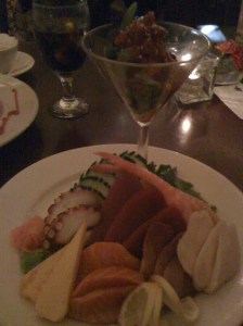 I got the chirashi (assorted sashami on rice). Loved it. Their spicy tuna (in the martini glass) was addictive. The flavor of the tuna and lemon came through first, then the heat. Wonderful. Had enough to bring some home for Carmen to have after work. It was wonderful.