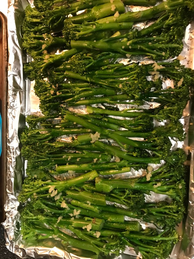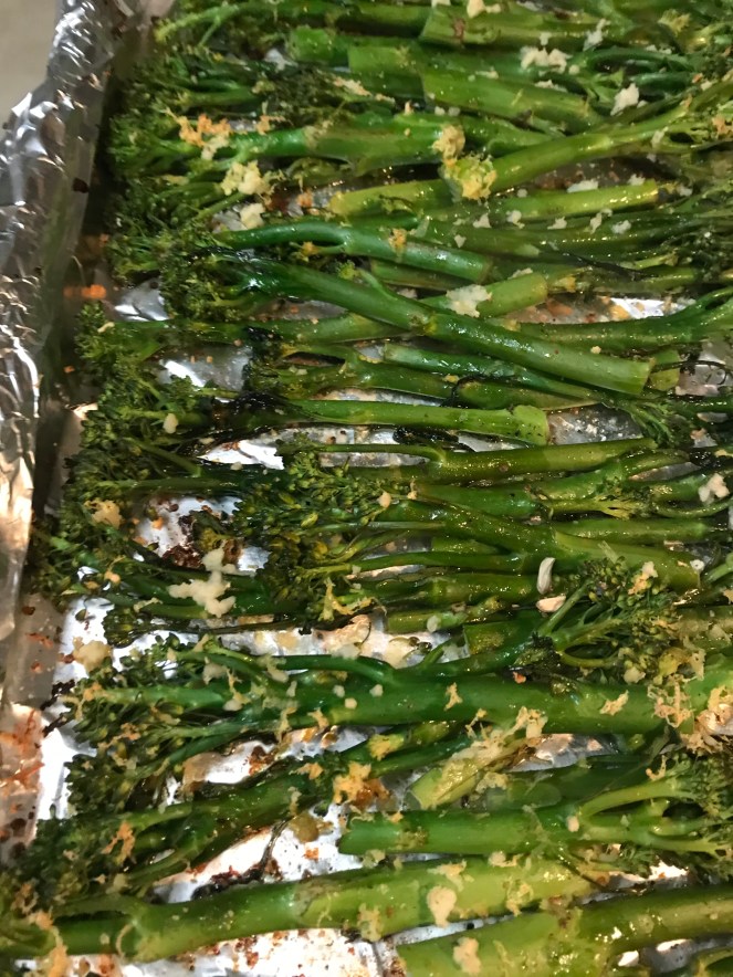 If you have read my blog for any length of time, you know that I love roasted vegetables. I tried roasting this broccolini to go with the Salmon and Orzo the other night. I used the same flavor profiles in the Salmon and Orzo, and I think it work out nicely.