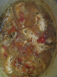 My plate with 1/2 cup of chicken salad, and a teaspoon (or a little more of the pecans), some grapes, and 3 crackers. So yummy.