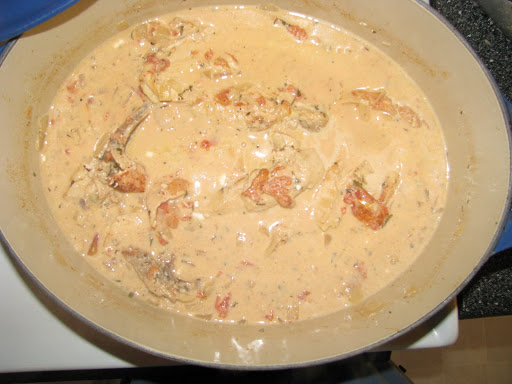 About a cup of mayonnaise, and 1/4 cup of lemon juice. Also, ground black pepper (again, to taste).